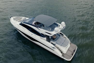 The sleek styling of the 43 LS is best complemented by the power and performance of twin Mercury Verado® V12 600hp engines. With a fuel capacity of 400 gallons combined with a top speed over 50 mph, get you to your favorite port of call fast and have more time to enjoy with family and friends.